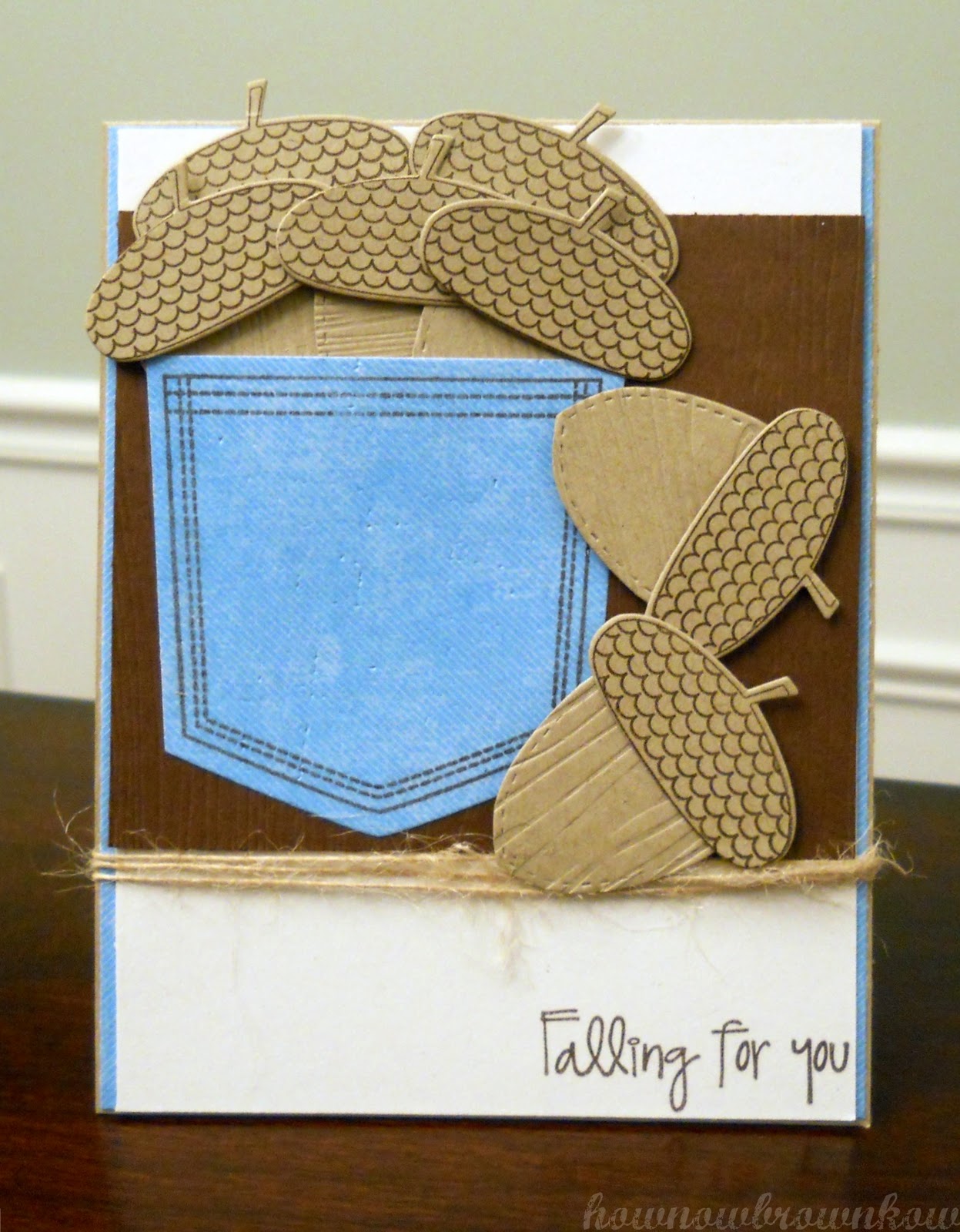 I just love my Lil' Inker acorns and thought that they went perfectly with the pocket die from WPlus9. I mean, who doesn't love a pocketful of...acorns...yes, acorns. ;)